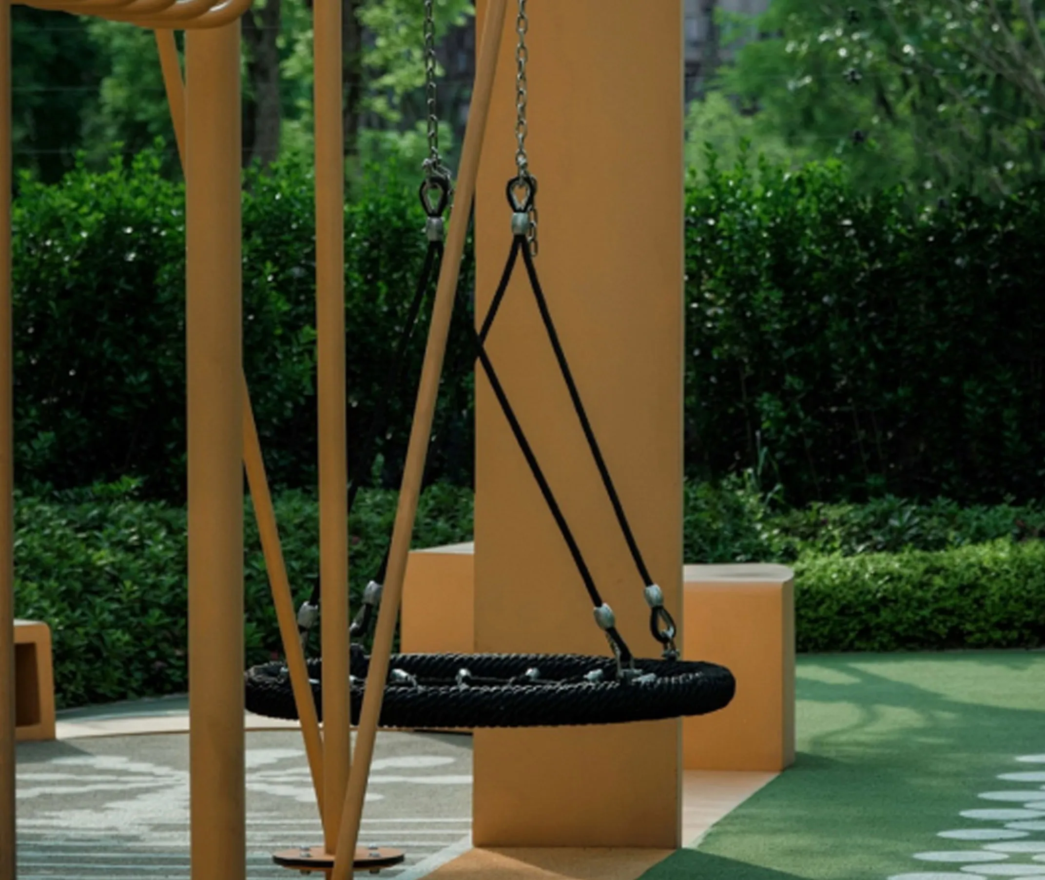 Strictly complies with global amusement park safety standards, featuring rounded edges on all components to prevent scratches and injuries. The galvanized steel chains are wrapped in soft, non-toxic PVC sleeves to protect children’s hands, while the stable hanging system and concrete foundation ensure the swing remains secure during use. The seat is designed with a non-slip surface, preventing children from slipping while swinging, and the load-bearing capacity is tested to handle over 300kg, ensuring safety even with maximum occupancy.