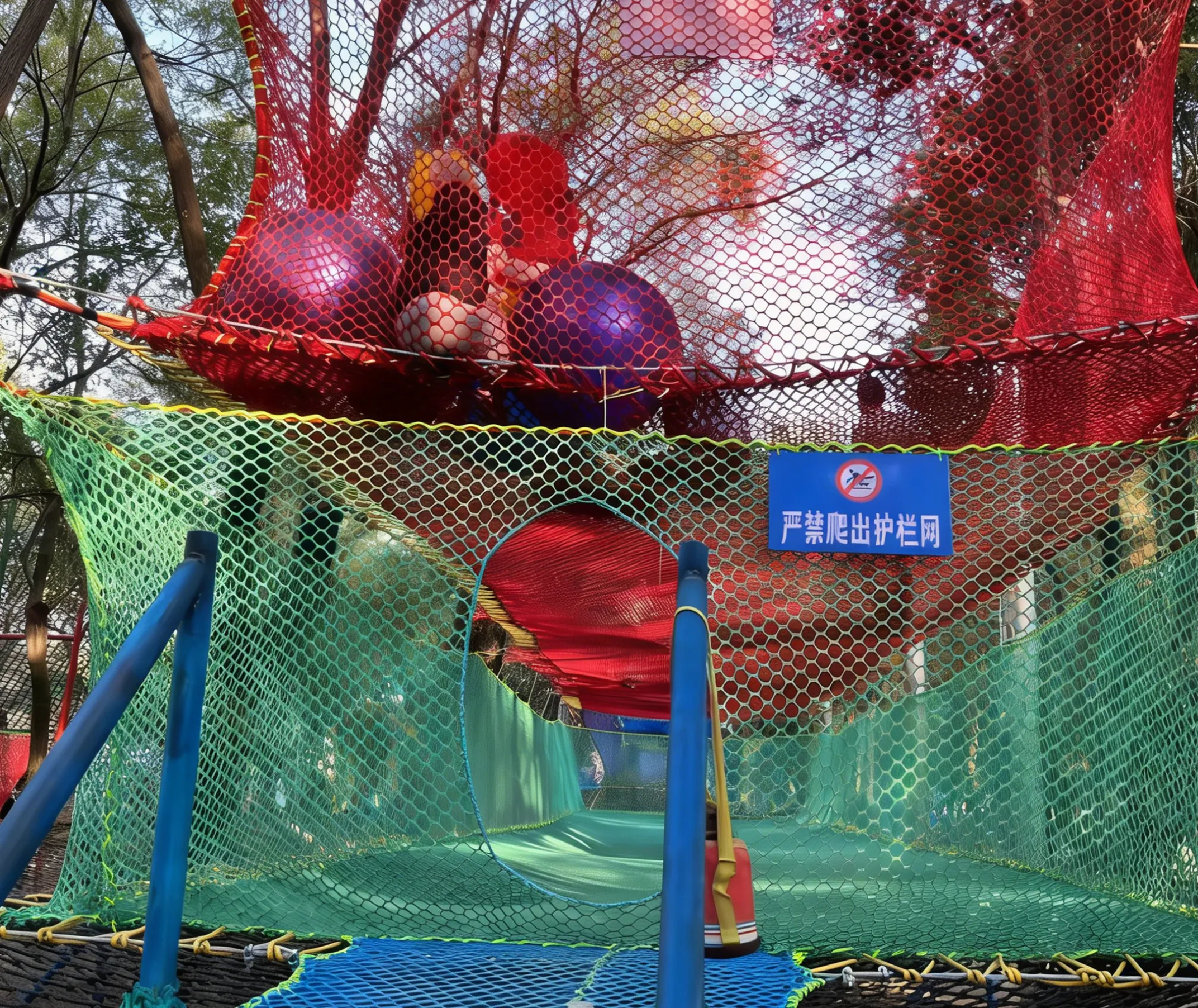 Q: Is the knotless net park safe for toddlers?A: Yes, it is extremely safe for toddlers. We offer customizable small mesh sizes (≥0.5cm x 0.5cm) that prevent toddlers from slipping through or getting entangled. The knotless weaving creates a smooth surface with no sharp edges or protruding knots, eliminating the risk of scratches or snags. Additionally, the material is non-toxic, BPA-free, and soft, ensuring maximum safety for young children. All products meet international playground safety standards for toddler use.