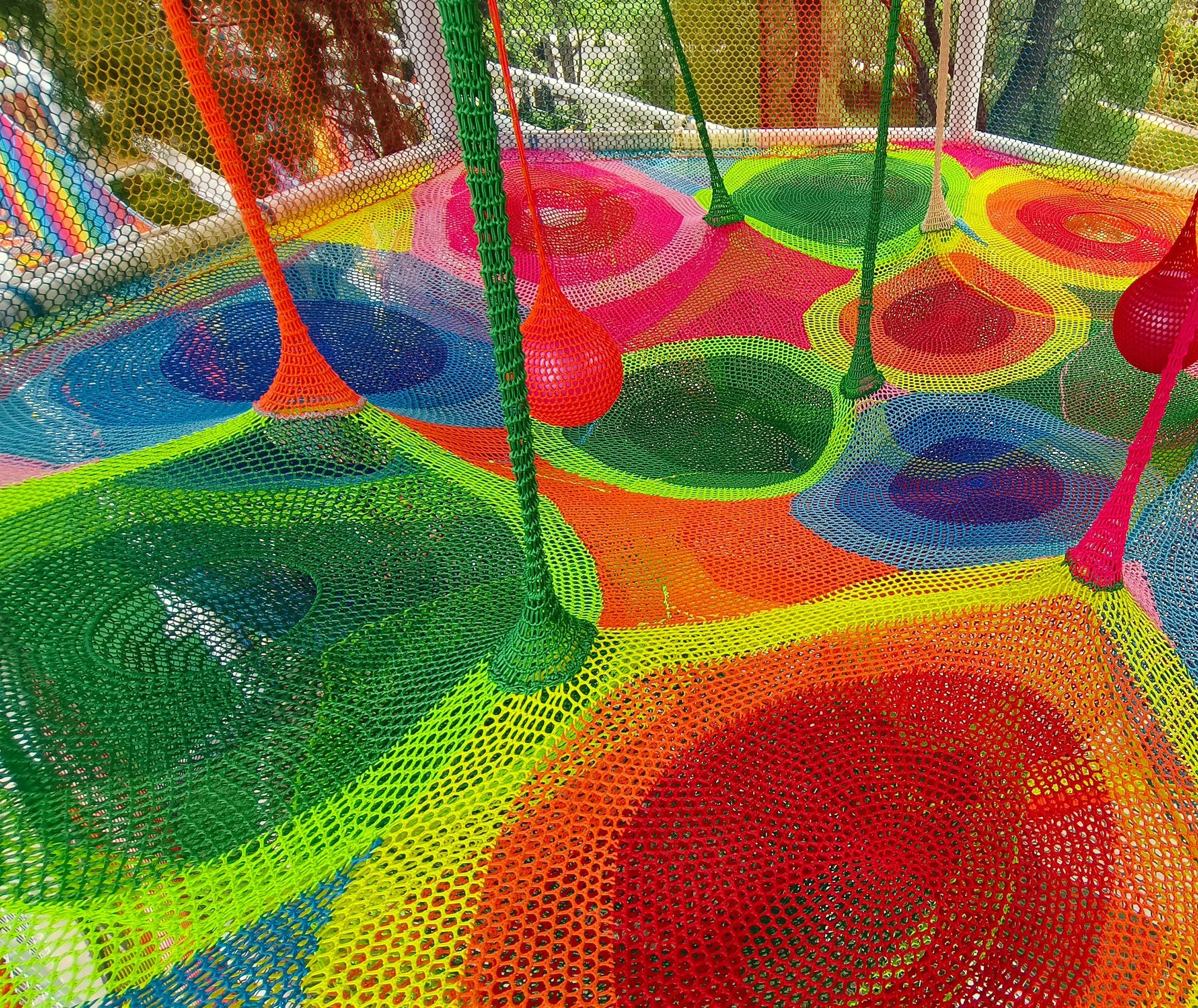 Used in scenic spot playgrounds, the knotless net can be customized into natural-colored (green, brown) nets that blend with the scenic environment. It can be used as a climbing net in jungle-themed play areas, fall protection net for high play structures, or as an enclosure to guide visitor flow. It enriches the scenic spot’s amusement options, extending visitors’ stay time and increasing added value.